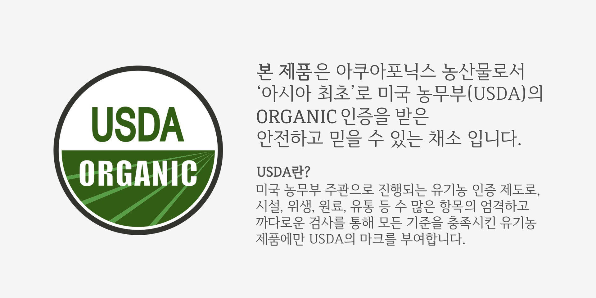 아시아 최초, 미국 농무부의 인증을 받은